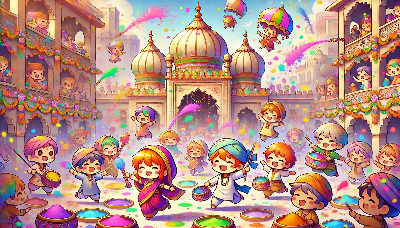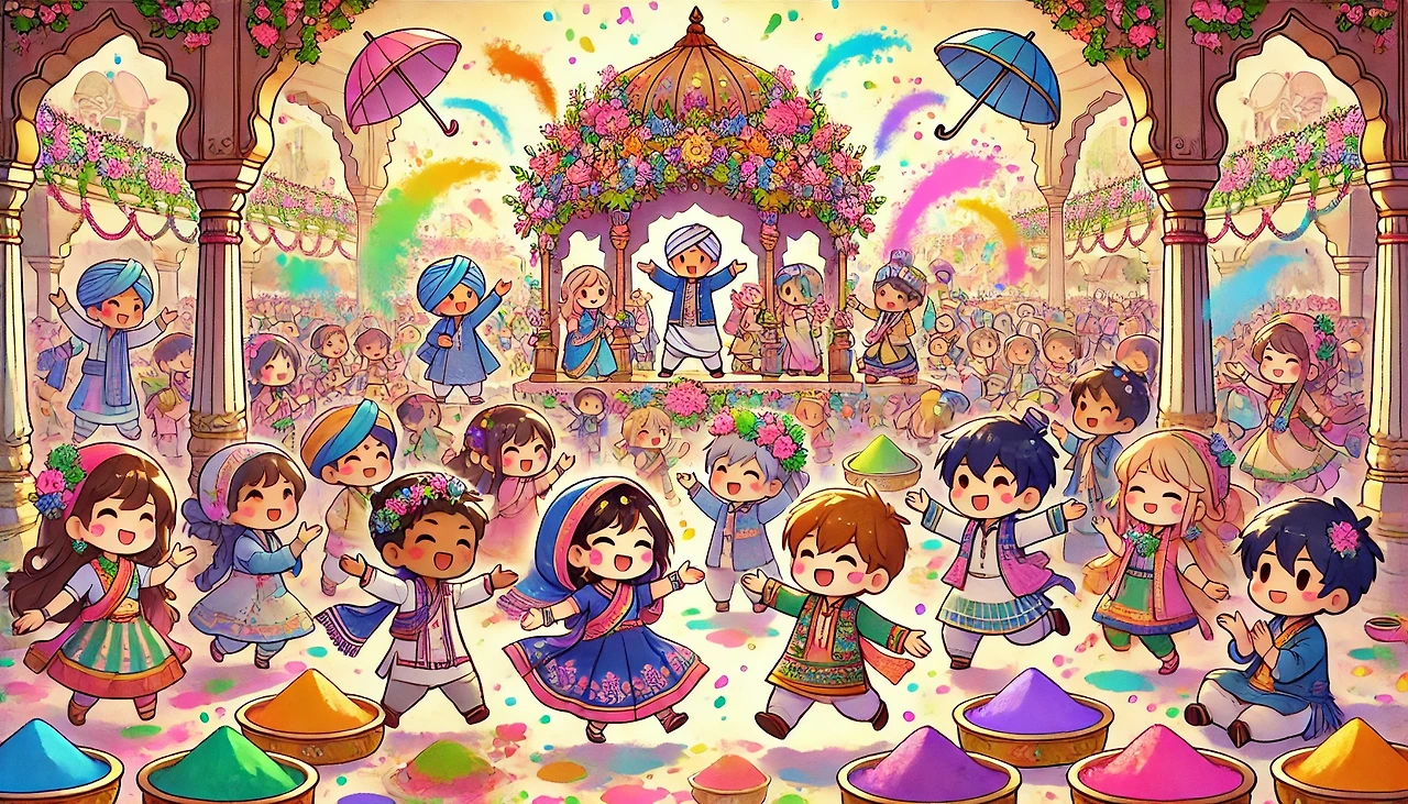 축제 기간 동안 사람들은 화려한 색상의 옷을 입고, 얼굴과 몸에 다양한 색깔의 가루를 묻힙니다. 색색깔의 가루는 봄의 화려함을 상징하며, 서로에게 축복과 행운을 기원하는 의미를 담고 있습니다.
