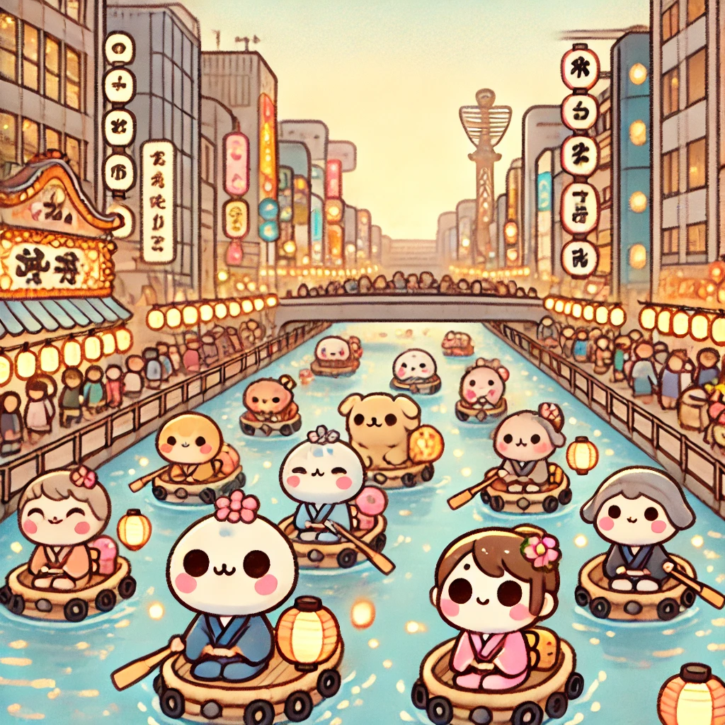 도톤보리 강 위를 주 무대로 하여 진행되는 이 축제는 배를 이용한 퍼레이드가 진행됩니다. 전통 의상을 입은 사람들이 배를 타고 강 위에서 퍼레이드를 진행하며, 관광객들은 유람선을 타고 도톤보리의 야경을 감상하며 축제 분위기를 만끽할 수 있습니다.